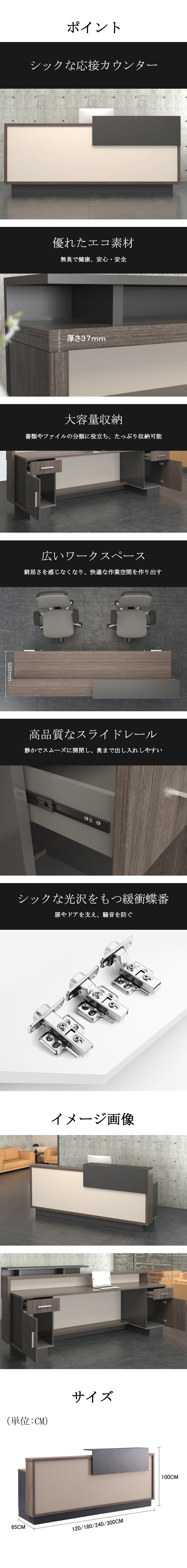 商品おすすめ受付カウンター 受付台 エントランス受付 レジカウンター カウンター オフィス受付 エコ素材 大容量収納 スライドレール 緩衝蝶番 シック JDT-448